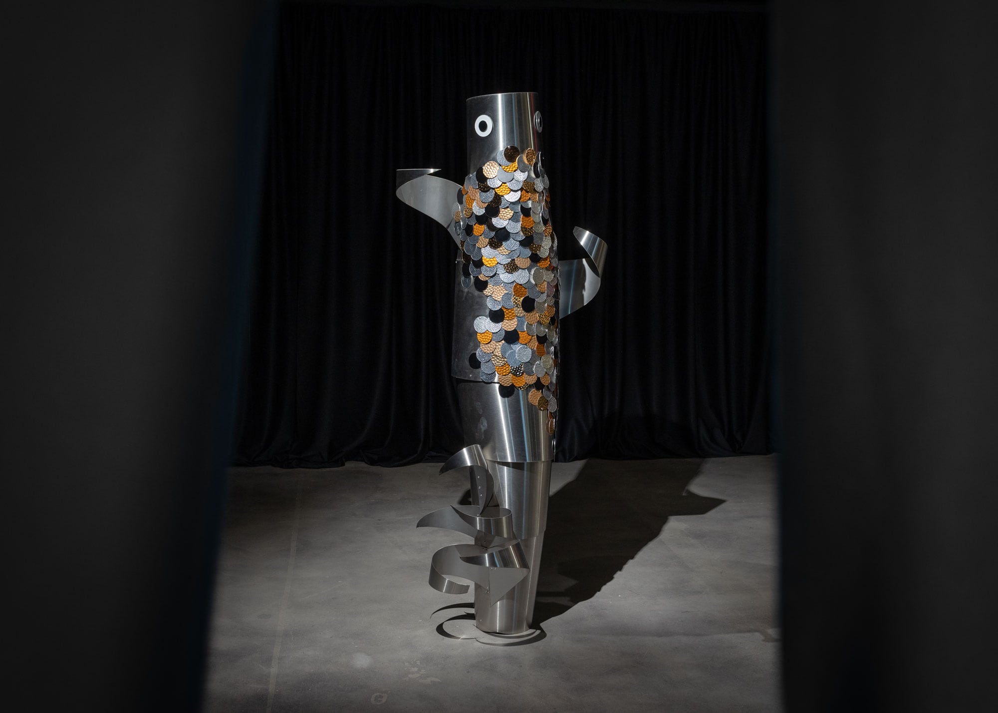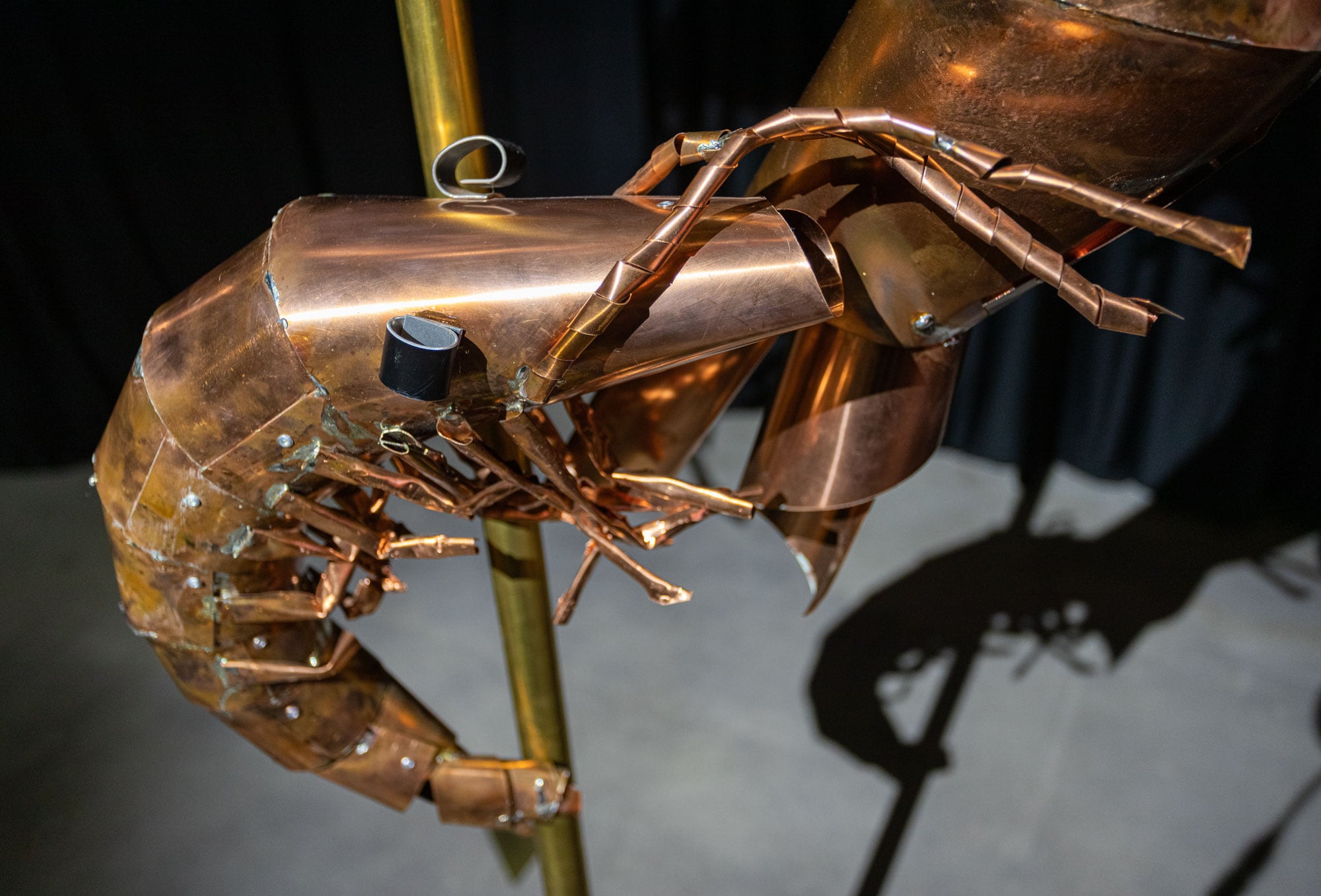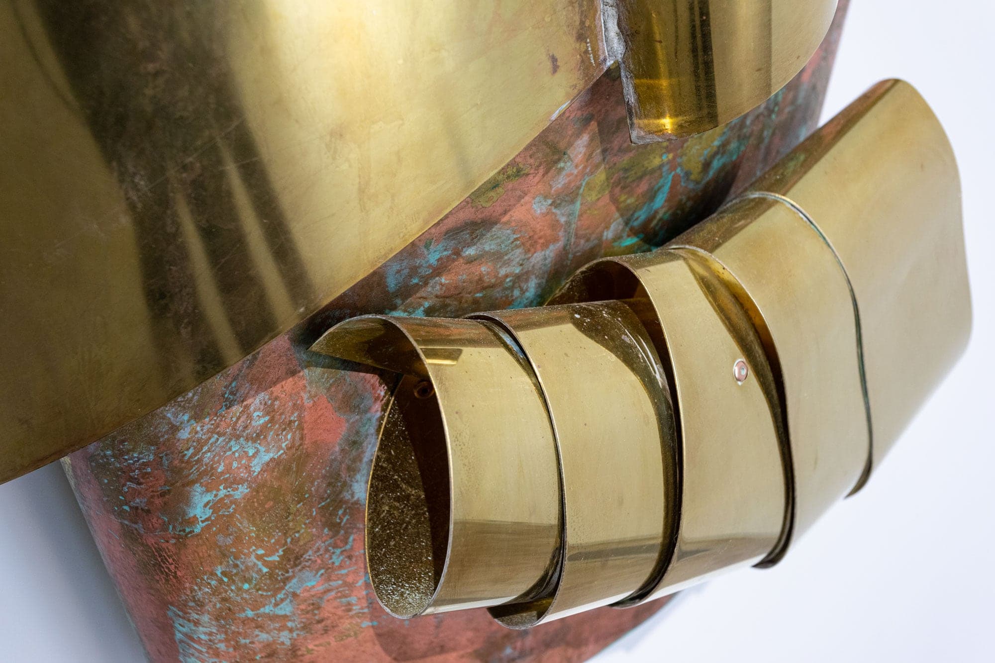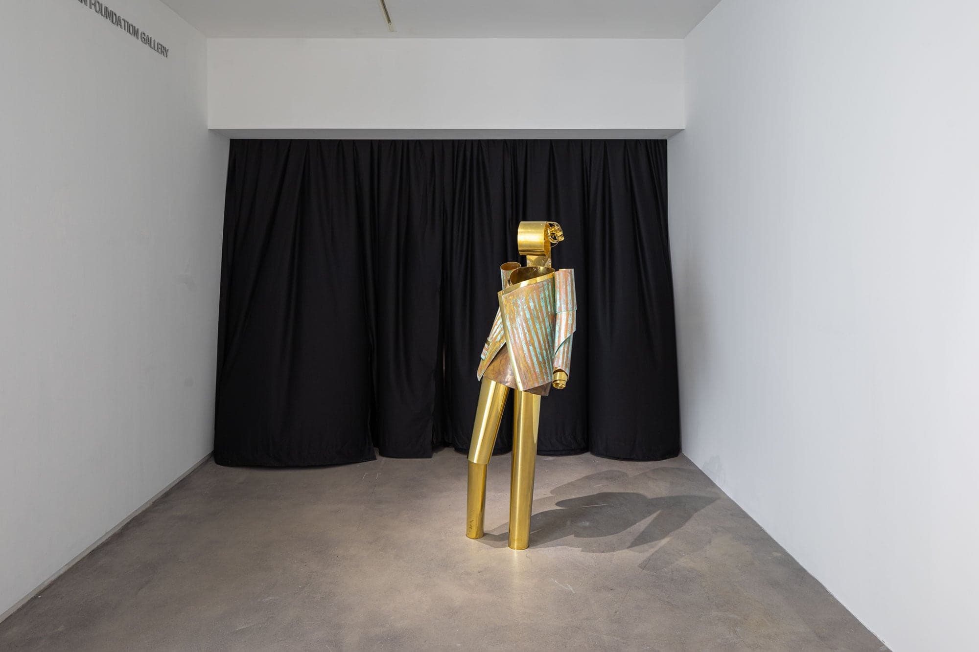 Caroline Mesquita is one of the most intriguing and innovative young sculptors to emerge out of France, and the Blaffer Art Museum is excited to present her first solo museum exhibition in the United States. Mesquita was born in 1989 in Brest, and she currently lives and works in Marseille. A jubilant disquiet presides over her sculptural work, which navigates the increasing intimacy between man and machine as our forms, materials, and desires frolic. Her combinatory practice marries the physicality of altered, oxidized, and painted copper and brass sheets with theatrical playfulness and socio-cultural reference. Mesquita’s ensuing experiments in metallurgy and materiality result in life-size figures interacting with one another in carnivalesque vignettes that slide between Hellenistic sculpture, baroque ballet, and melancholic parade. Even as she has more recently experimented with different chemical treatments to create a wider spectrum of color, as well as the medium of cut paper to interject lightness and fancy, she retains a distinctive boldness in her approach to space and the object—orchestrating immersive environments that pull us in, wittingly or not, to the questions being posed. In her continued exploration between majesty and monstrosity, earthly and the manmade, the Blaffer is thrilled to produce a newly commissioned, site-specific installation in 2021.