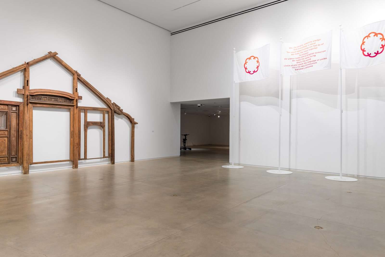 The exhibition is comprised of seven multi-part projects produced between 2010 and 2016, including: “Fade In” (2010), a video that tracks the fake antiques trade in Vietnam and is accompanied by an 18th century antique house; “Television Commercial for Communism” (2011), an advertisement campaign about communist propaganda disguised as capitalist propaganda; “The Dream” (2012), a multimedia work that documents a Honda Dream motorcycle – a highly coveted status symbol in Vietnam – as it is gradually stripped of its parts over the course of a night on the streets of Ho Chi Minh City, and is displayed alongside the chassis of the moped; and, “The Living Need Light, The Dead Need Music” (2014), a visual and musical journey through the fantastical funeral traditions and rituals of south Vietnam and New Orleans.